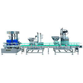 该灌装生产线是由四头灌装机、自动上盖旋盖机以及自动圆瓶...