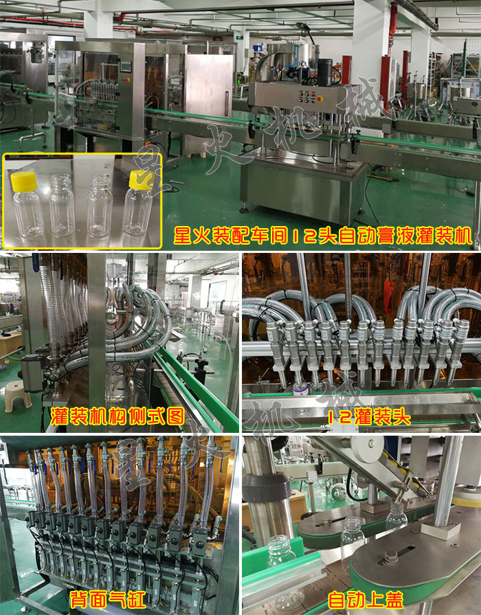 12头膏液灌装旋盖生产线/全自动膏液灌装旋盖生产线是由12头自动膏液灌装机+全自动旋盖机组建而成的一条具有高自动化程度的灌装生产线,能广泛适应中高粘度液体、膏体物料灌装旋盖等包装工序,是理想的灌装生产线。